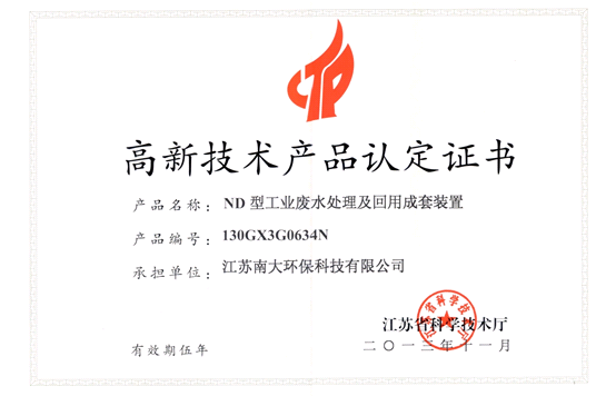 此次南京市共有168家企業(yè)共計(jì)269件產(chǎn)品獲得高品證書,其中環(huán)保企業(yè)有8家,我公司包含其中。同時(shí),“ND型工業(yè)廢水處理及回用成套裝置”也是我公司獲得的首個(gè)環(huán)保治理設(shè)備方面的高新技術(shù)產(chǎn)品。